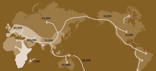 · Khoảng 40.000 năm trước, nhờ băng hà tan, thời tiết ấm lên, người Ðông Nam Á đi lên khai phá lục địa Trung Hoa rồi tiếp đó vượt eo Bering sang chiếm lĩnh châu Mỹ. Suốt trong thời gian này không hề có bất kỳ đột biến (mutation) nào mà chỉ có hòa huyết tự nhiên giữa những thành phần người có mặt ở Ðông Nam Á.