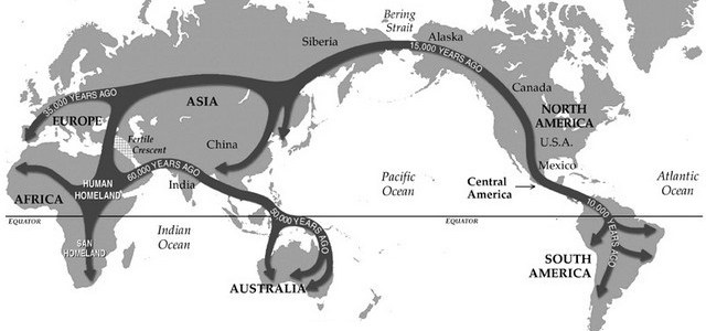 Về sự liên hệ tổng quát của các chủng tộc và nguồn gốc của các giống dân, giáo sư Cavalli-Sforza là nhà di truyền học đã có nhiều nghiên cứu sâu rộng nhất. Sự tìm hiểu nghiên cứu về sự liên hệ di truyền của các chủng tộc do các nhà nghiên cứu, Cavalli-Sforza và Lin, thực hiện gần đây (5)(7) đã cho thấy sự di dân của con người từ Phi châu đến Á châu qua Nam Á. Rồi từ đấy có hai nhánh đi khác nhau: một đi lên Ðông Á và Bắc Mỹ và một đi xuống Châu Ðại Dương.