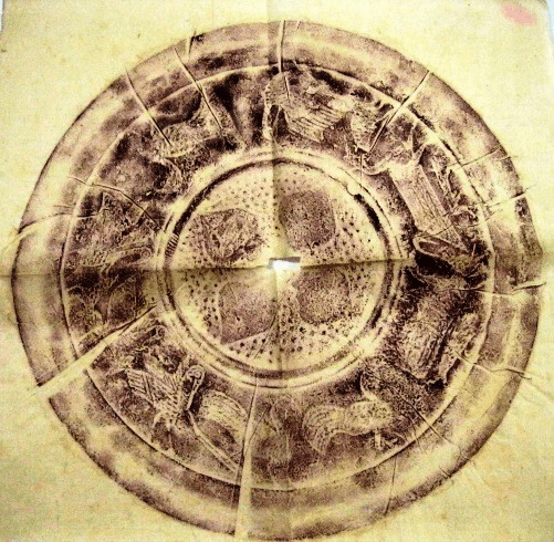 Hình rùa trên mảnh giáp đồng và trên một ngọn giáo Đông Sơn (sưu tập Lê Anh, Hà Nội)