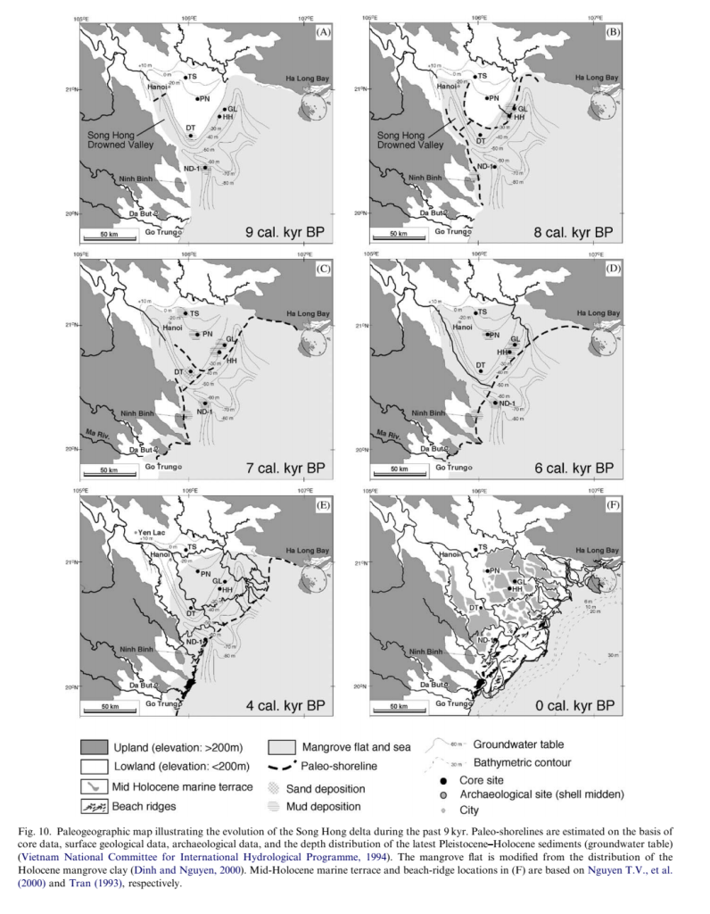 Thời điểm 33.000 năm tới 20.000 năm cách ngày nay đã diễn ra đợt băng hà lớn cuối cùng, khiến mực nước biển xuống thấp ở mức 120 đến 130 mét đã làm lộ ra một vùng đồng bằng rộng lớn tại vịnh Bắc Bộ và cả vùng thềm lục địa phía Nam Việt Nam (được gọi là thềm Sundaland) [7]. Đây là nơi sinh sống thuận lợi cho người cổ rời khỏi châu Phi, bên cạnh các cư dân sinh sống trên núi của văn hóa Hòa Bình, thì có một lượng nhất định người cổ đã sinh sống tại vùng đồng bằng vịnh Bắc Bộ, kiến tạo đời sống của mình tại đây. Nghiên cứu di truyền của lúa đã chứng minh lúa được thuần hóa tại vùng xung quanh hạ lưu sông Châu tới miền Bắc Việt Nam. [8]