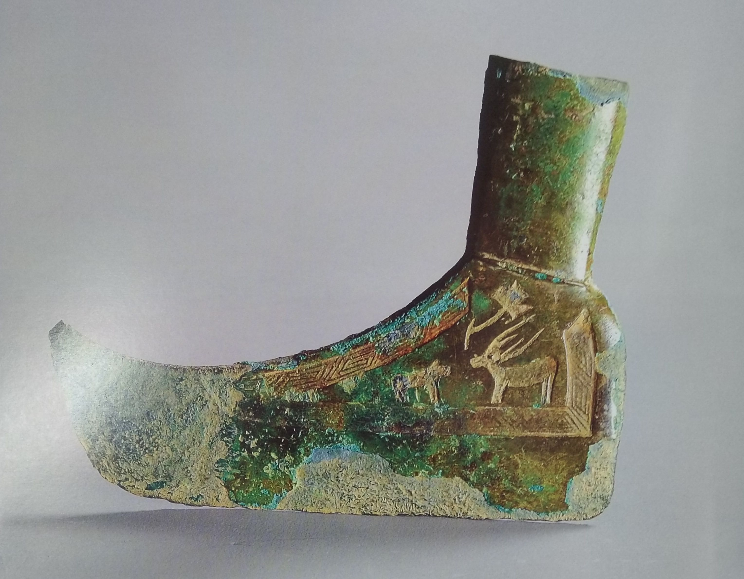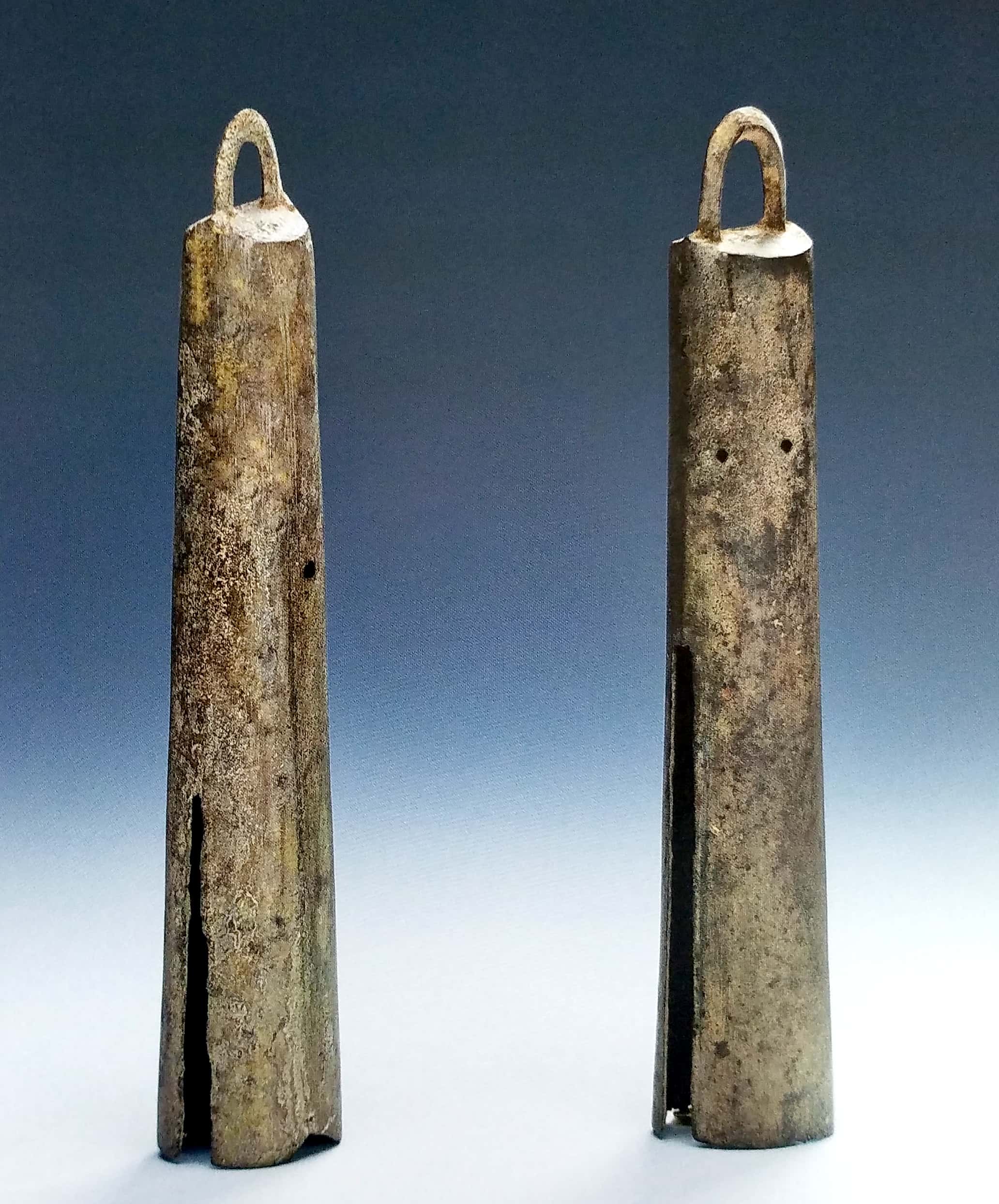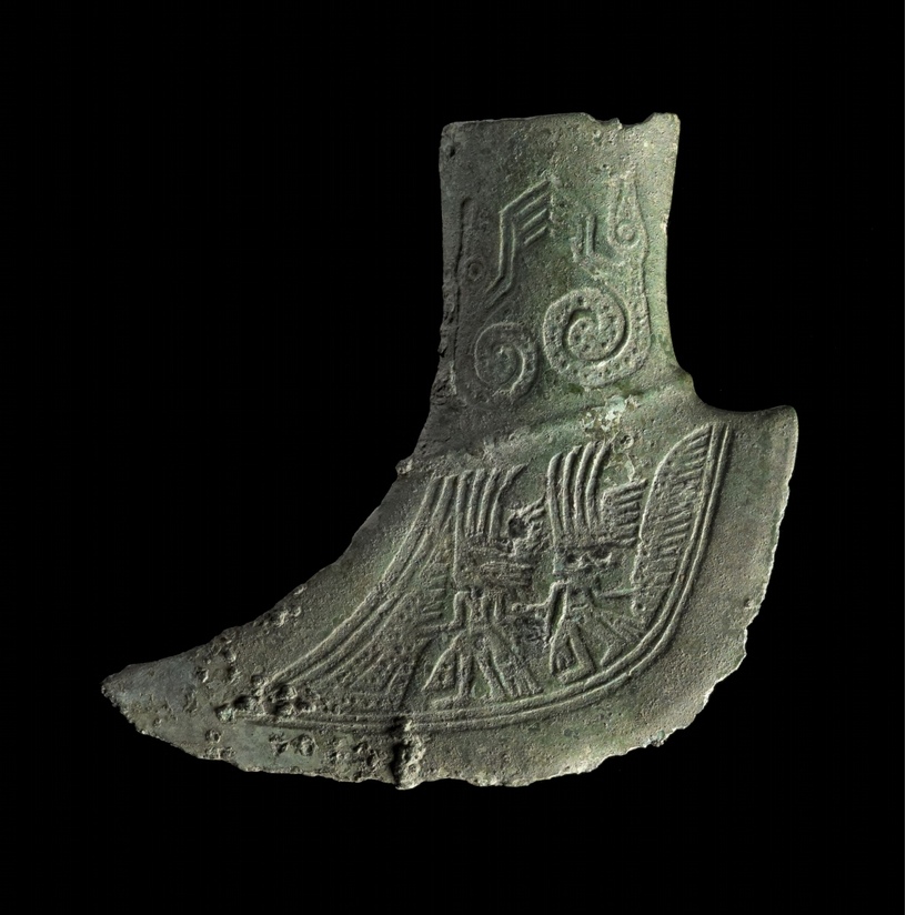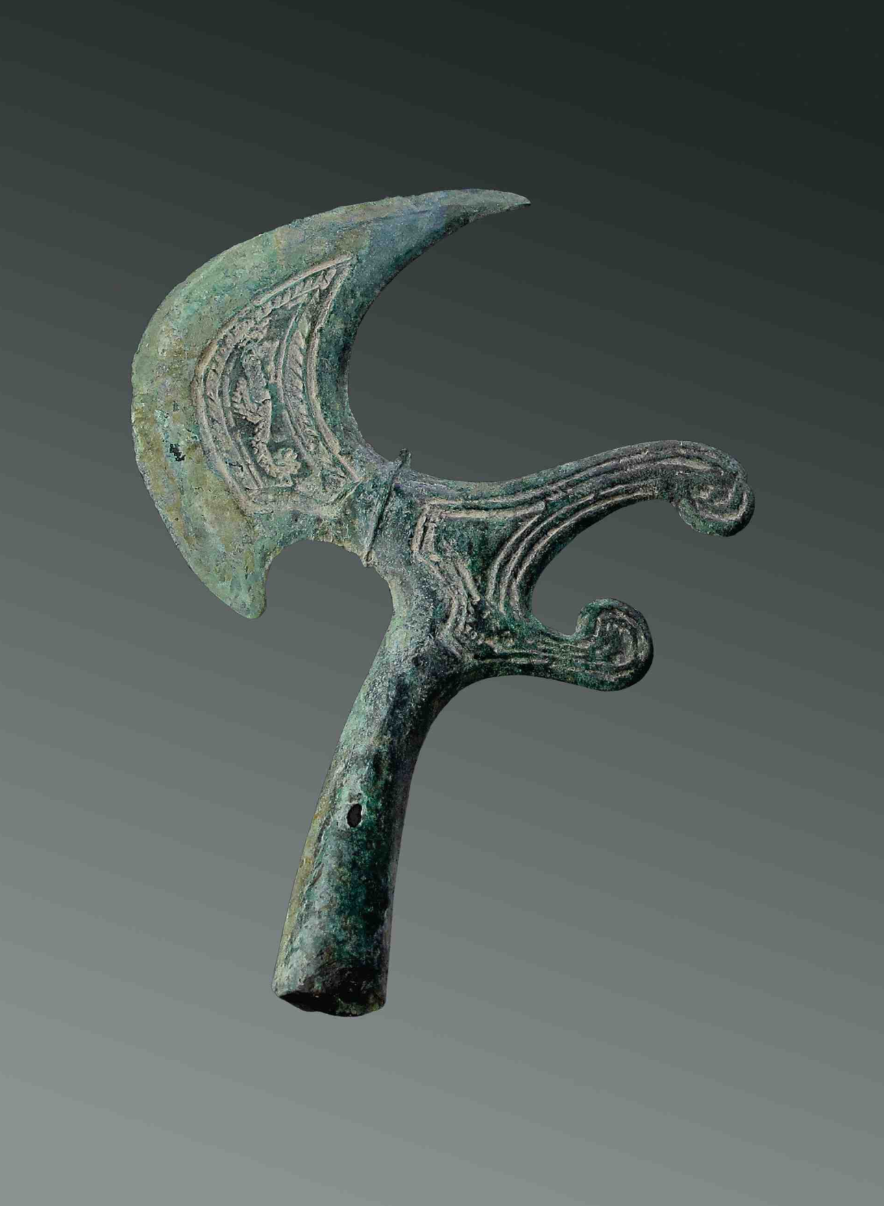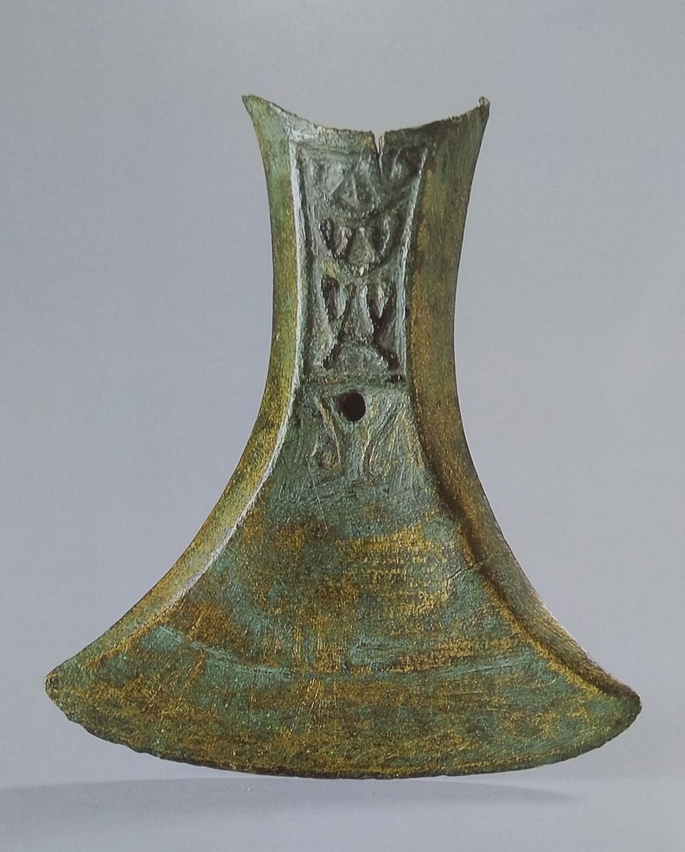 Rìu đồng thời Đông Sơn có nguồn gốc xa xưa từ các loại hình rìu đá và rìu ngọc tại các văn hóa trong vùng Dương Tử, tới thời kỳ đồ đồng, thì các loại hình rìu đã có sự thay đổi cơ bản, phát triển thành các loại hình rìu lưỡi hài gót vuông, gót tròn và rìu cân xòe. Rìu đồng có chức năng chính là lễ khí, được các thủ lĩnh sử dụng trong các dịp lễ tế.