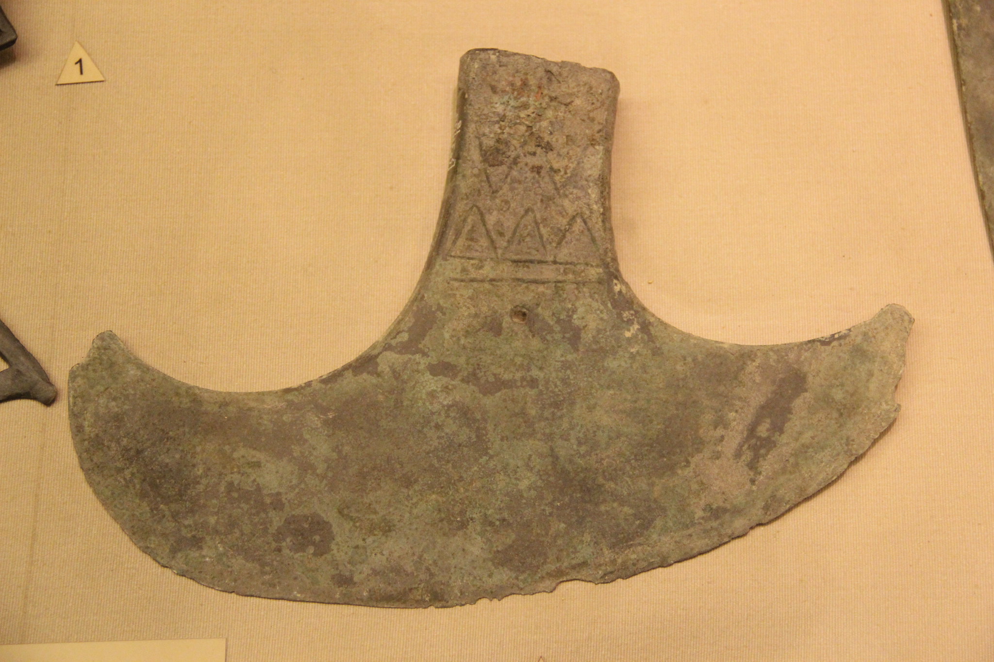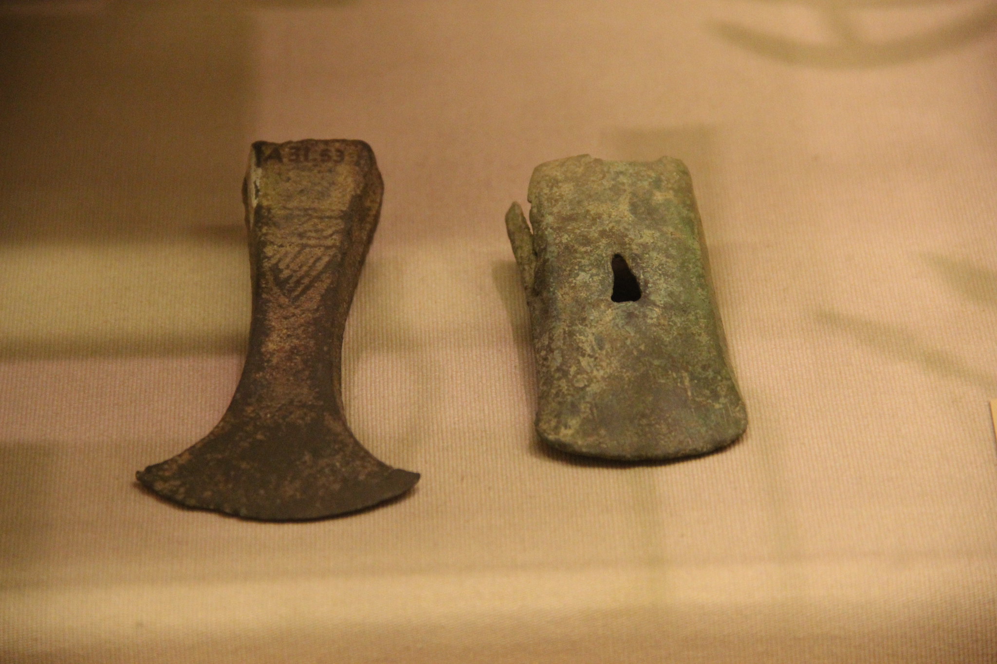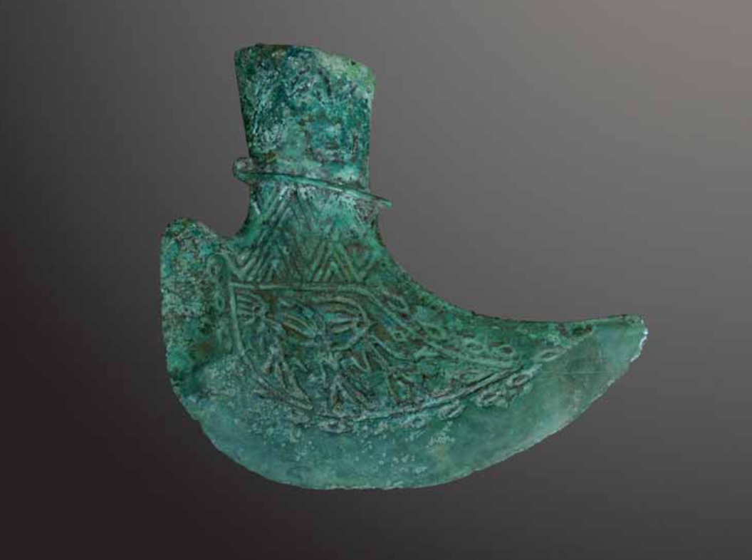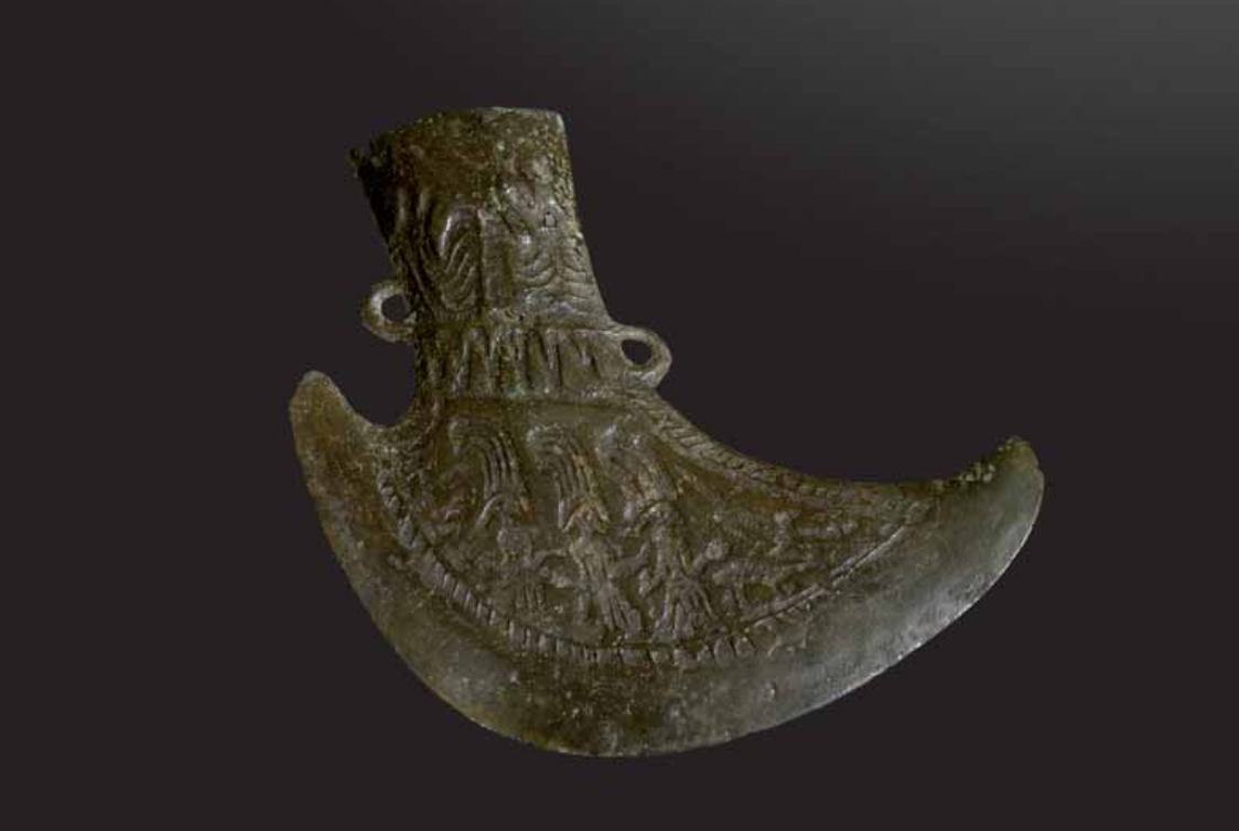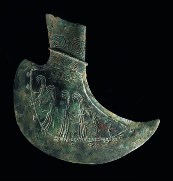 Rìu đồng thời Đông Sơn có nguồn gốc xa xưa từ các loại hình rìu đá và rìu ngọc tại các văn hóa trong vùng Dương Tử, tới thời kỳ đồ đồng, thì các loại hình rìu đã có sự thay đổi cơ bản, phát triển thành các loại hình rìu lưỡi hài gót vuông, gót tròn và rìu cân xòe. Rìu đồng có chức năng chính là lễ khí, được các thủ lĩnh sử dụng trong các dịp lễ tế.