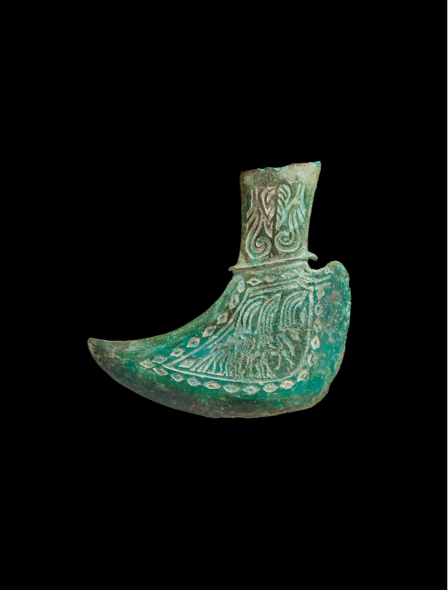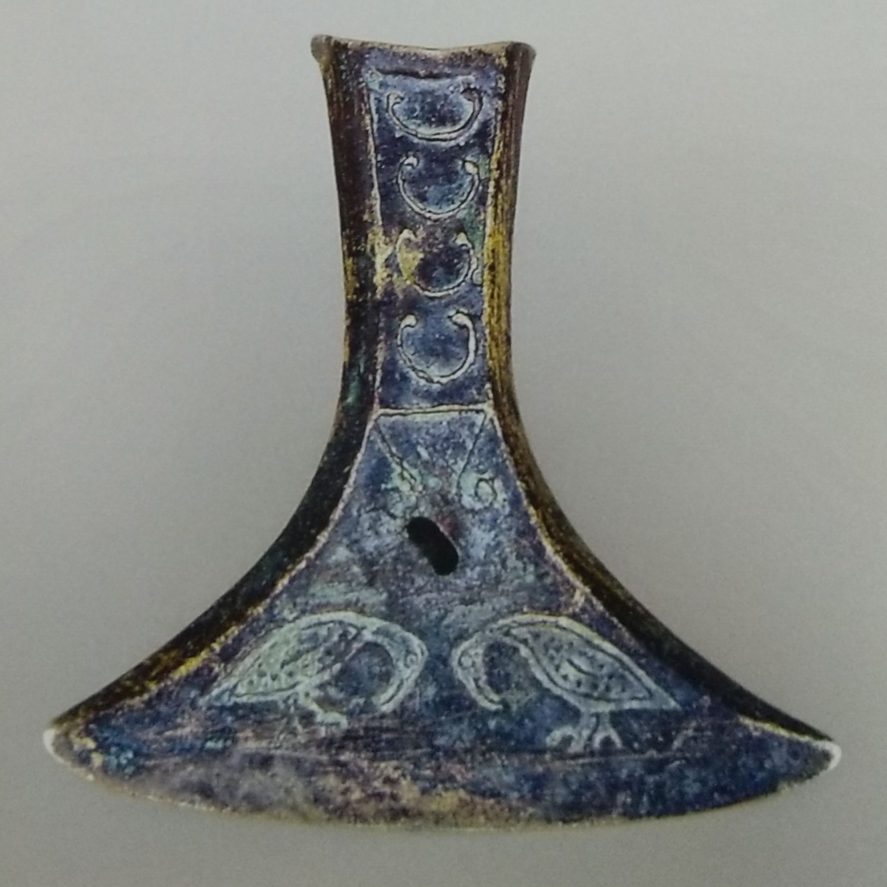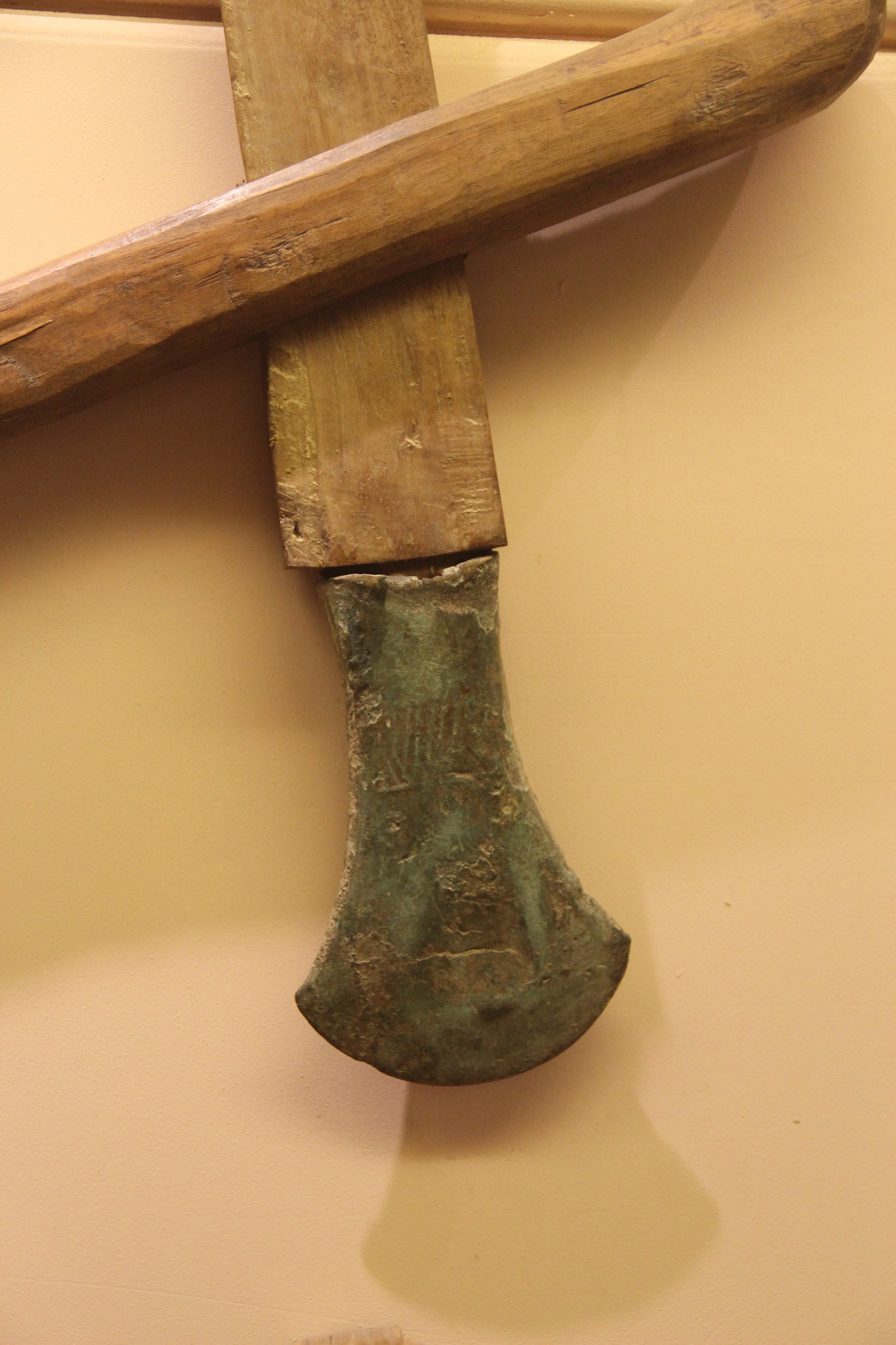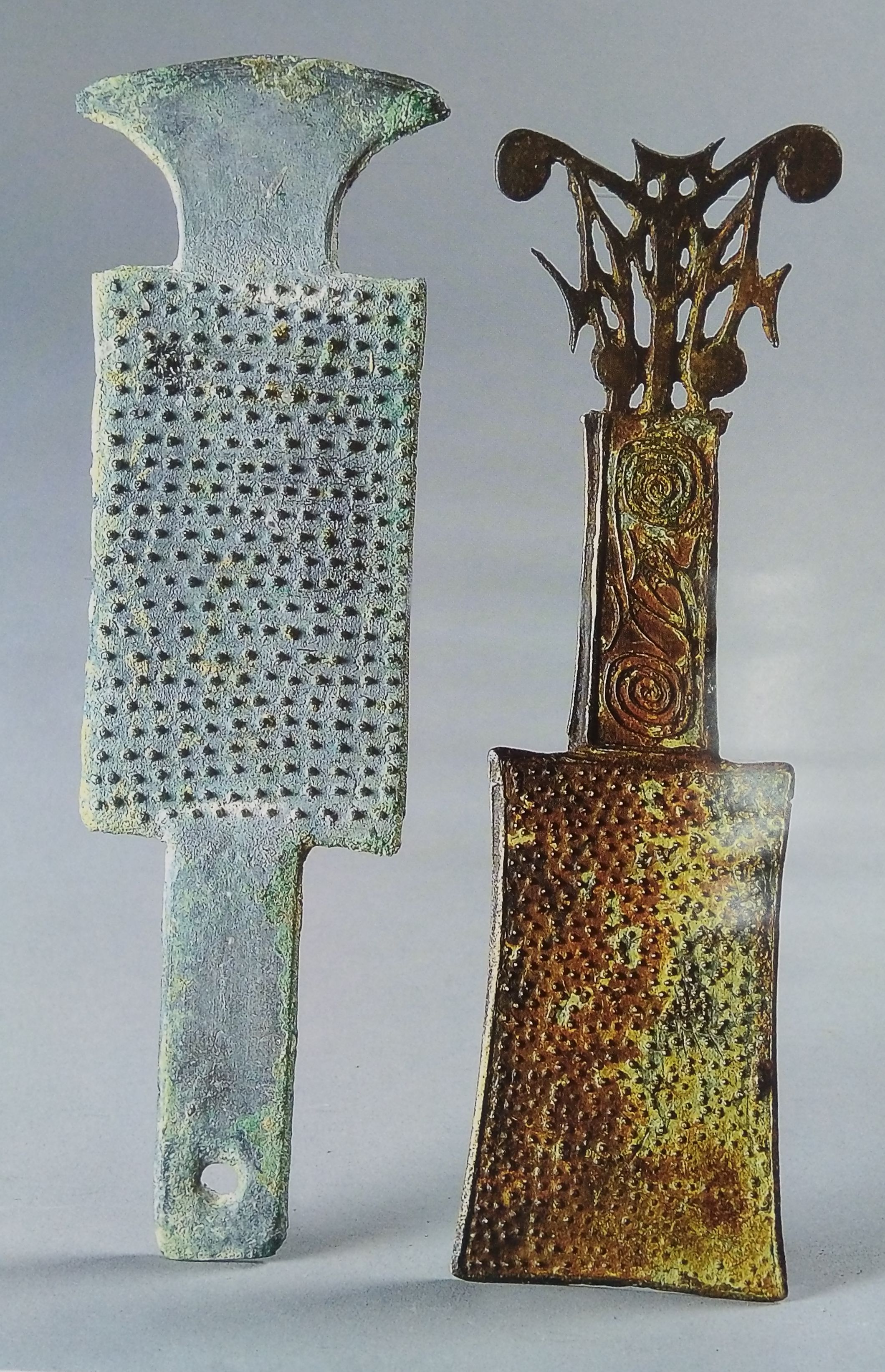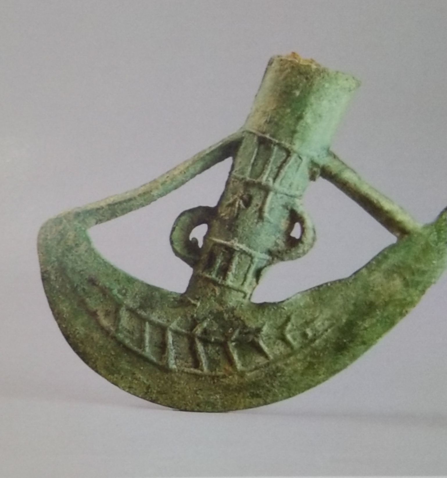 Rìu đồng thời Đông Sơn có nguồn gốc xa xưa từ các loại hình rìu đá và rìu ngọc tại các văn hóa trong vùng Dương Tử, tới thời kỳ đồ đồng, thì các loại hình rìu đã có sự thay đổi cơ bản, phát triển thành các loại hình rìu lưỡi hài gót vuông, gót tròn và rìu cân xòe. Rìu đồng có chức năng chính là lễ khí, được các thủ lĩnh sử dụng trong các dịp lễ tế.