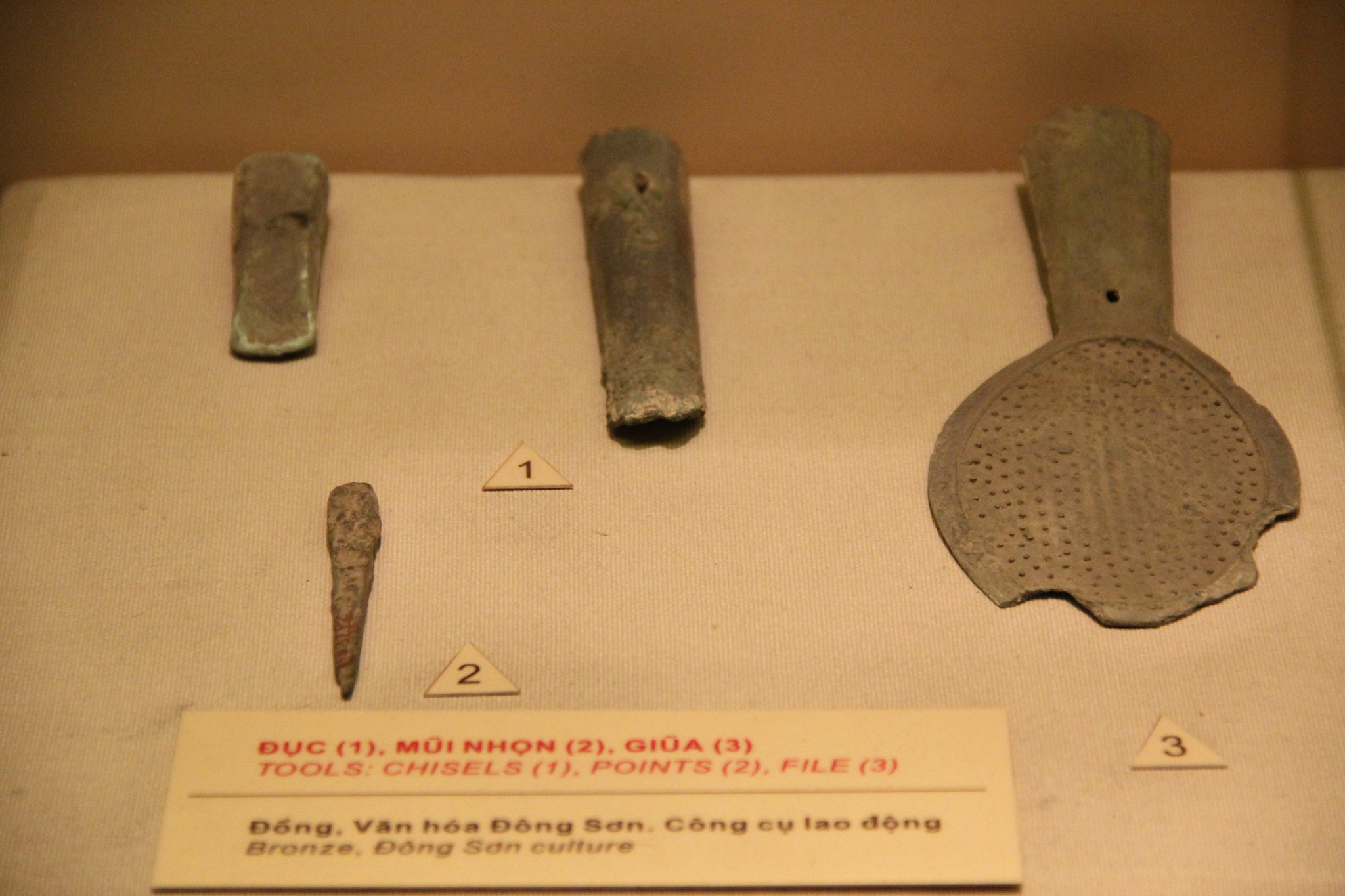 Dụng cụ lao động là không thể thiếu trong đời sống của bất cứ dân tộc nào, với người Việt thời Đông Sơn, họ cũng chế tạo ra nhiều loại hình công cụ để phục vụ cuộc sống của mình: cuốc, thuổng, xẻng, cày, rìu, dùi, đục, lưỡi câu, bàn mài…