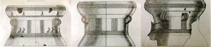 Những trống đồng Đông Sơn tìm được ở đảo Java, Indonesia (Hình 1: trống ở Tjiandjur, hình 2: trống ở Semarang, hình 3: trống ở Banjumas) (Nguồn: H. Van Heekeren 1958. Hình 8, dẫn lại bởi Trịnh Sinh, đường dẫn.)