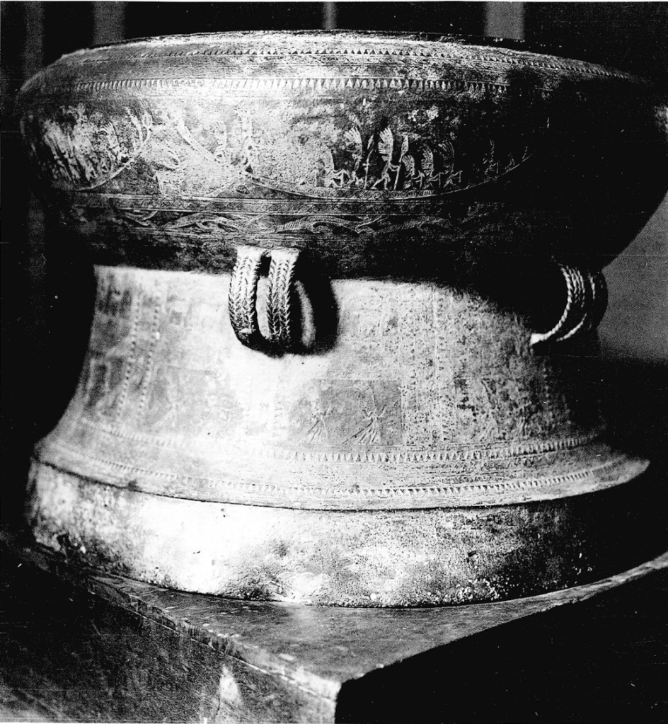 Trống đòng loại I Heger được tìm thấy tại Campuchia. [Nguồn: Bảo tàng Quốc gia Phnom Penh, Campuchia, chụp bởi Helmut Loofs-Wissowa]
