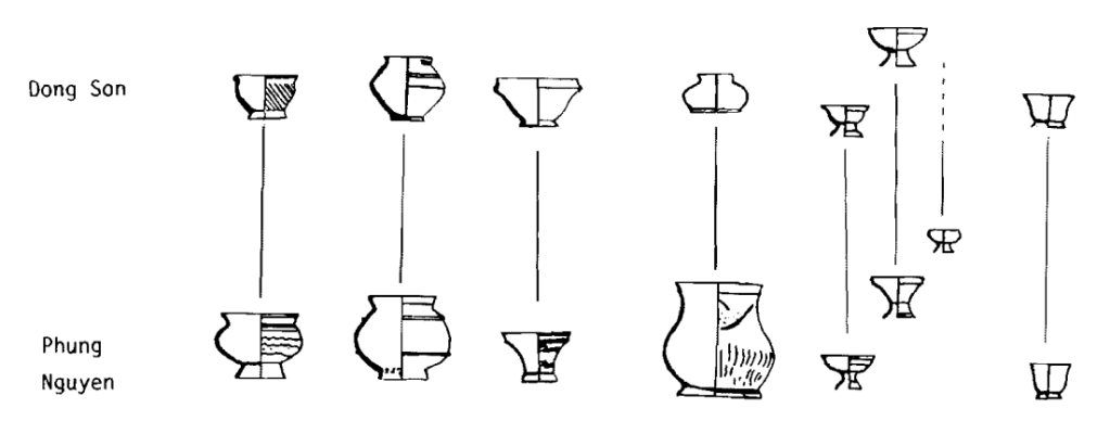 Các loại hình đồ gốm kế thừa trực tiếp kể từ thời văn hóa Phùng Nguyên tới văn hóa Đông Sơn. [4]