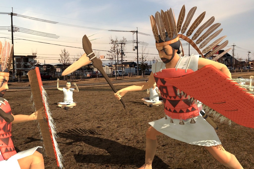 Cư dân văn hóa Yayoi cũng đội mũ lông chim tương tự như trên trống đồng Đông Sơn. [Nguồn: dẫn]