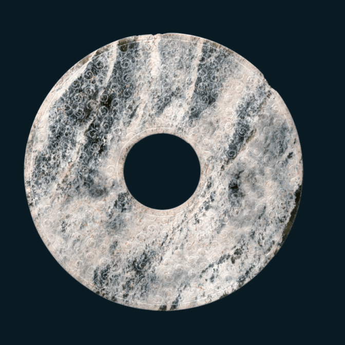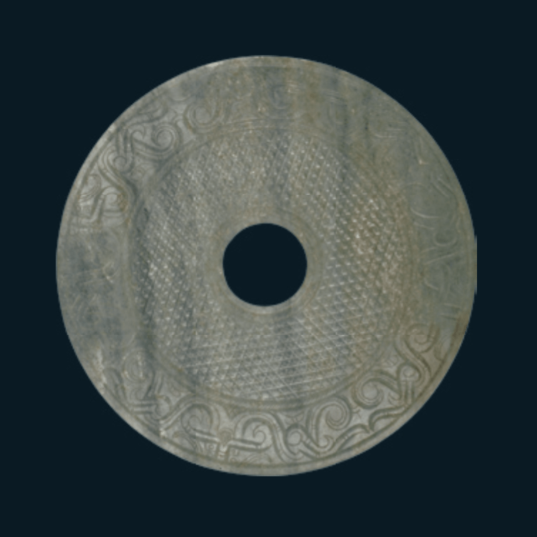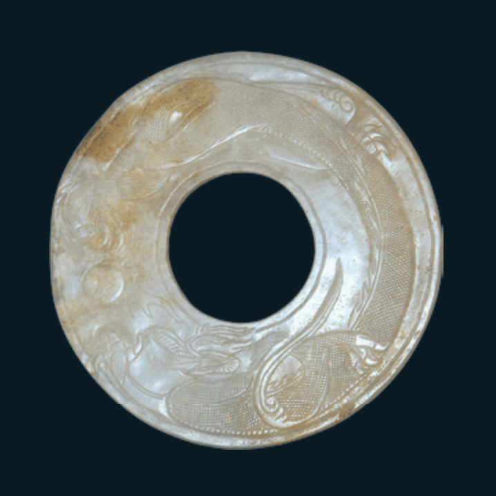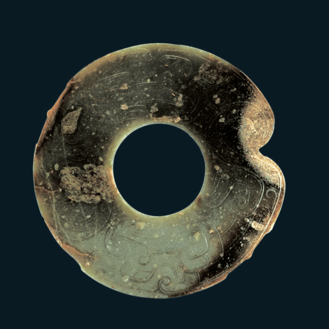 Đĩa bích các triều đại Hoa Hạ (trái qua phải, trên xuống dưới): Tây Chu, Chiến Quốc, Tây Hán, Đường. [13]