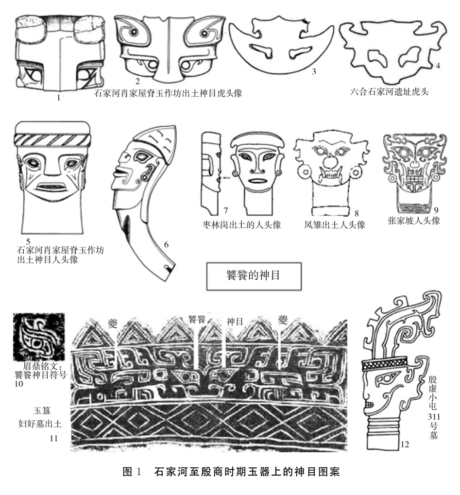 Tượng hình người văn hóa Thạch Gia Hà (1-9) và hoa văn, tượng ngọc nhà Thương (10-12). [22]