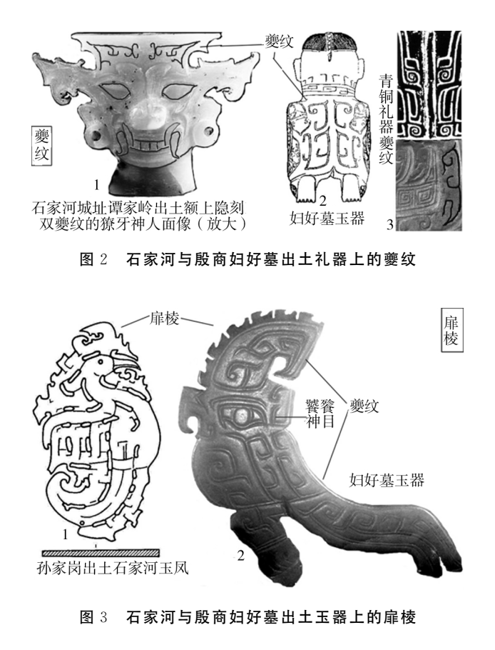 Ngọc đầu người văn hóa Thạch Gia Hà và ngọc hình người nhà Thương. [Nguồn: 1: [20]; 2,3 [11]]