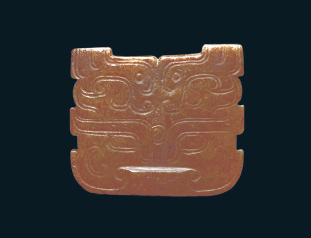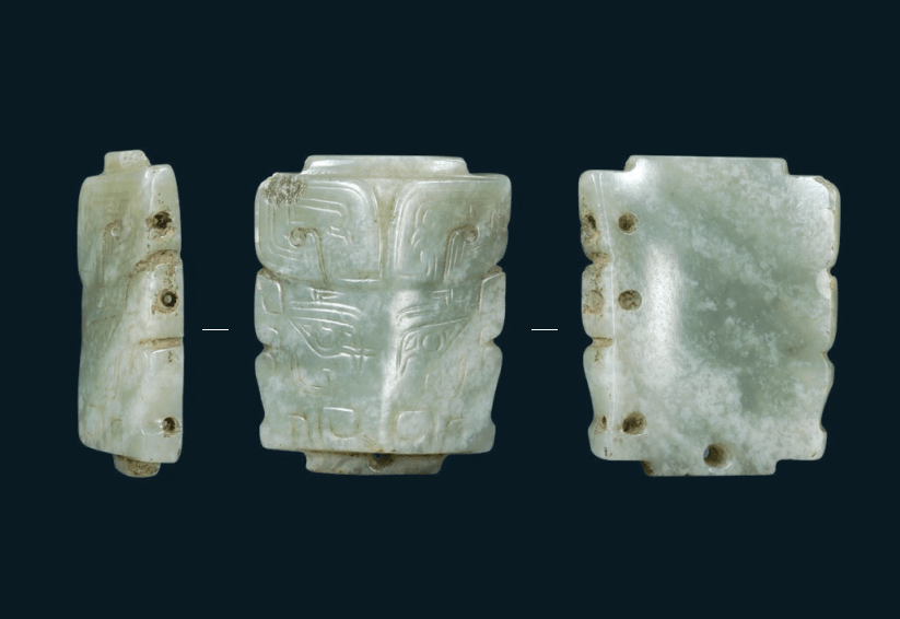 Viên ngọc với motif Thao Thiết của nhà Thương chịu ảnh hưởng của văn hóa Lương Chử. [11]