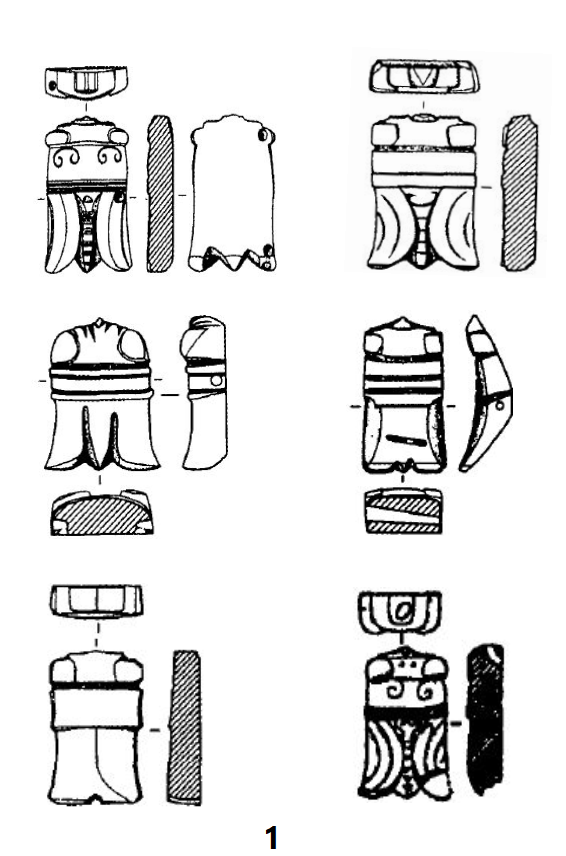 Motif Thao Thiết trên các miếng ngọc các thời kỳ: Xuân Thu, Chiến Quốc, Đông Hán. [Nguồn: 1,2: [11], 3: [13]]