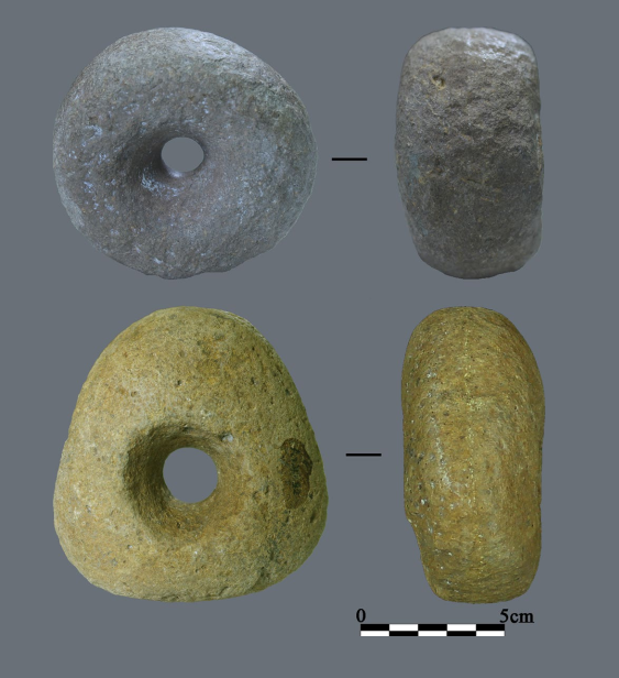 Gốm và đá đục lỗ tìm thấy tại hang Tiên Nhân động. [Nguồn: 1, 2. [17]; 3. dẫn]