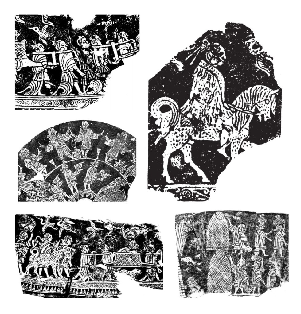 Hình ảnh quý tộc Việt đi chân đất trên các hoa văn đồ đồng Điền Việt. [Nguồn]
