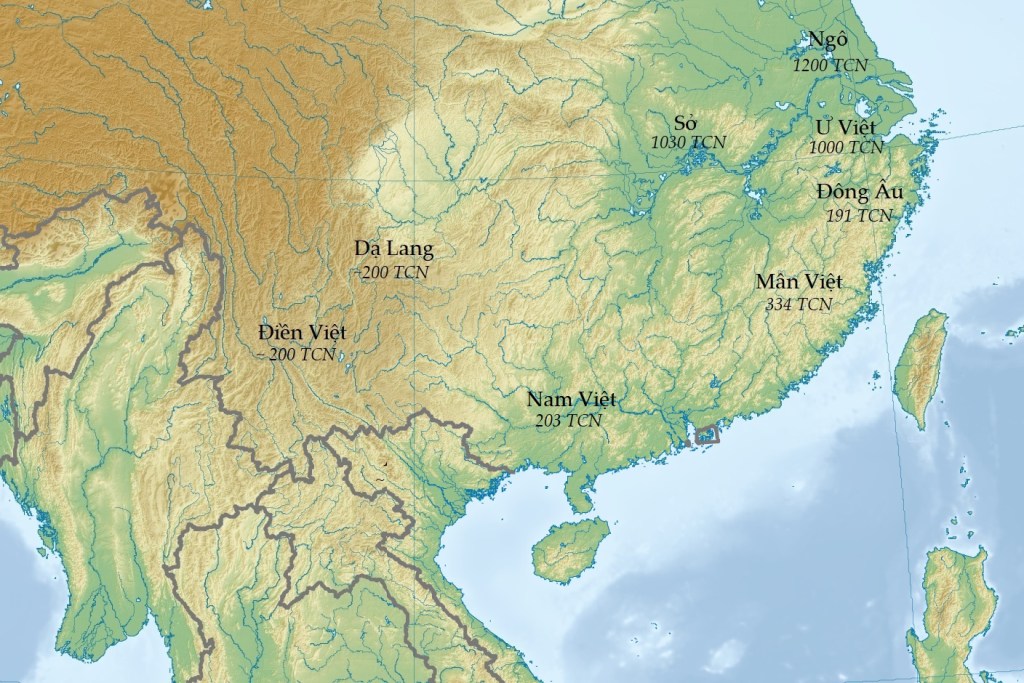 Bản đồ phân tích các thời điểm thành lập của những khái niệm được cho là Bách Việt, thực tế, đây là tên gọi của các quốc gia, không phải tộc danh.