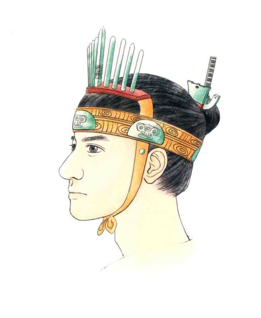 Đó là hình ảnh những thủ lĩnh đội mũ lông chim, tất cả những nhân vật này đều có chim Tiên bay trên đầu (là một loài chim có nguồn gốc thần thoại của văn hóa Đông Á cổ, được kế thừa ở văn hóa Đông Sơn, loài chim này sau này được gọi là Phượng Hoàng bởi người Trung Quốc).