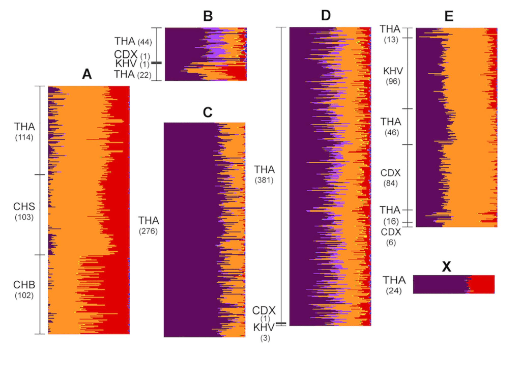 Kutanan, W., Liu, D., Kampuansai, J., Srikummool, M., Srithawong, S., Shoocongdej, R., Sangkhano, S., Ruangchai, S., Pittayaporn, P., Arias, L. and Stoneking, M., 2021. Reconstructing the Human Genetic History of Mainland Southeast Asia: Insights from Genome-Wide Data from Thailand and Laos. Molecular Biology and Evolution, 38(8), pp.3459-3477.