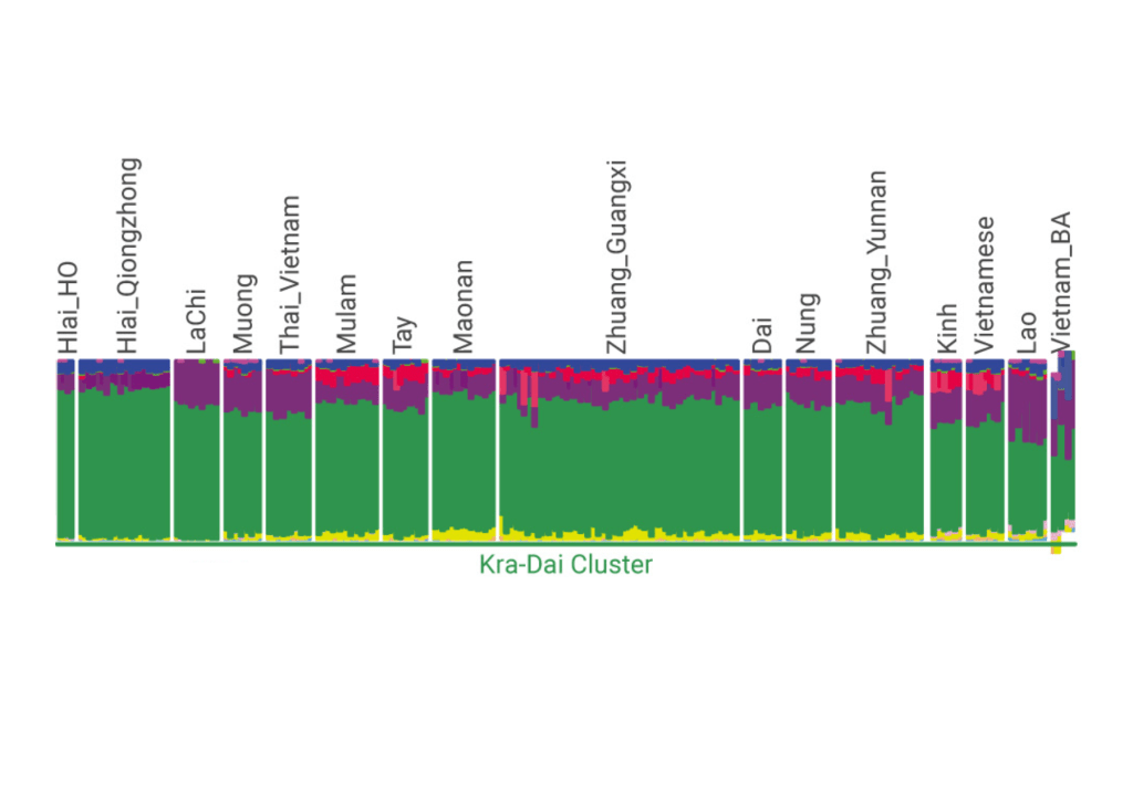 Admixture trong nghiên cứu của nhóm (Huang et al., 2022) (hình 1) hiện đang được sử dụng để cho rằng gen của người Tai-Kadai (cách gọi khác là Kra-Dai) chiếm đa số trong gen của người Việt hiện đại và trong gen của văn hóa Đông Sơn. Tuy nhiên, có một số vấn đề như sau về nghiên cứu này.