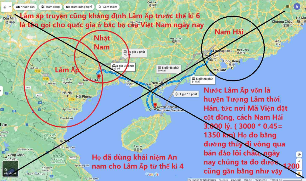 Nếu mọi người để ý sẽ thấy một chuỗi suy luận liên quan tới vấn đề đưa các địa danh thời Bắc thuộc lên Lĩnh Nam: từ cơ sở xóa bỏ lịch sử thời Bắc thuộc, nó sẽ được suy ra trước đó là sự tồn tại của nước Lâm Ấp ở miền Bắc Việt Nam. Cũng từ đó, toàn bộ lịch sử thời tiền Bắc thuộc của người Việt bị xóa bỏ. Thực tế những người tuyên truyền thông tin này cũng đưa tới kết luận về quốc gia Lâm Ấp trong vùng miền Bắc Việt Nam, cho rằng vua Hùng là Phạm Hùng của Lâm Ấp.