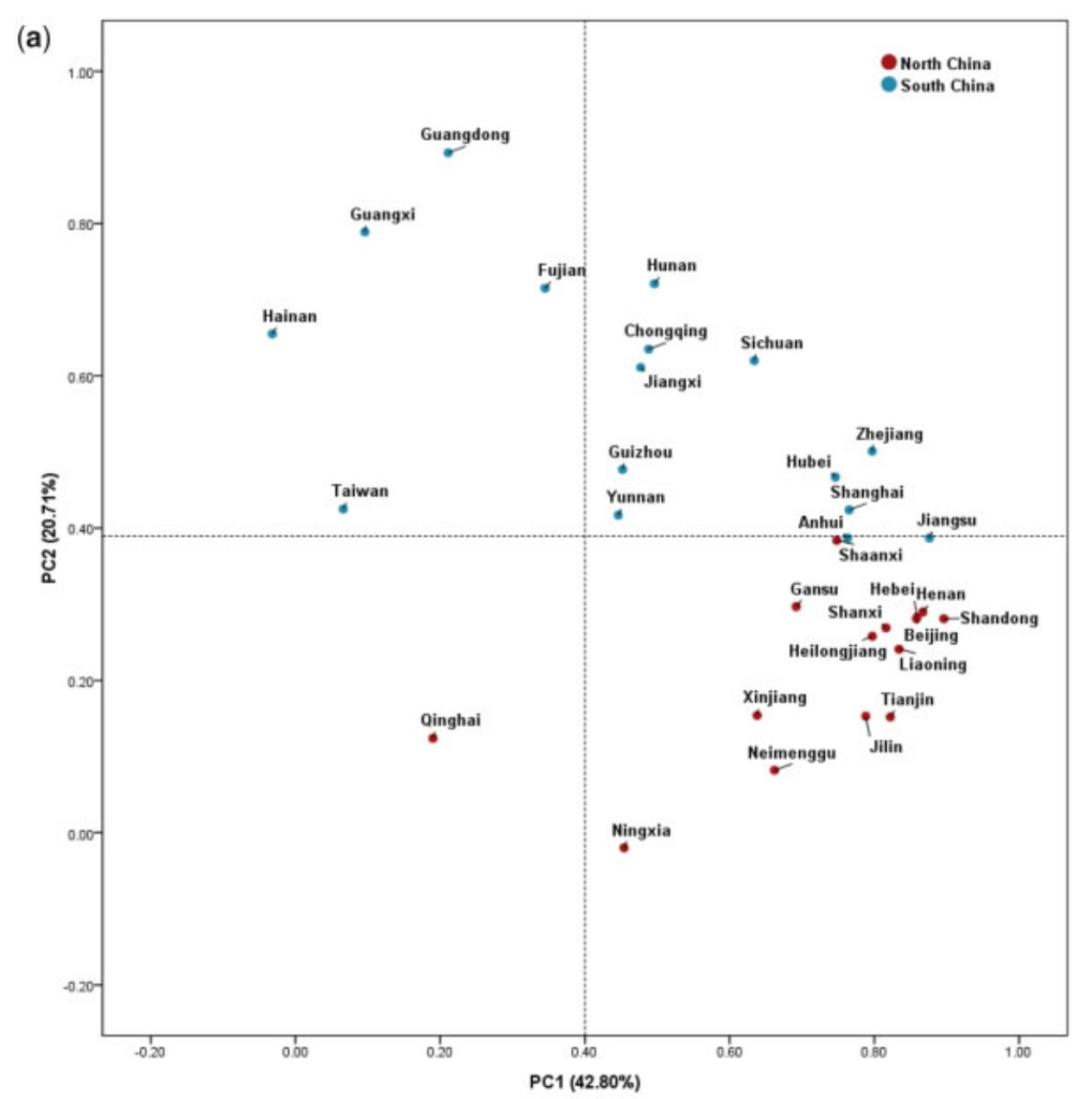 Nghiên cứu di truyền theo dòng mẹ cho thấy được khoảng cách di truyền của người Hán Bắc-Nam Trung Quốc