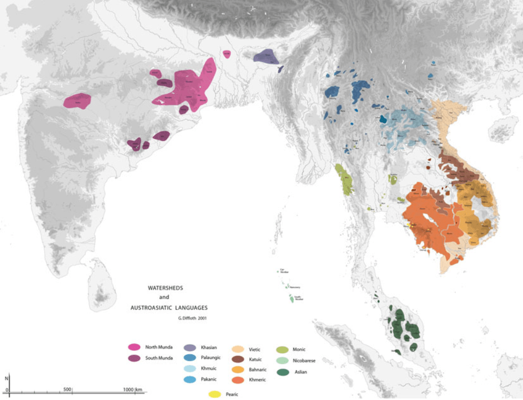 Minh họa: 1. Bản đồ hệ ngôn ngữ Nam Á, nguồn: Gerard Diffloth.
